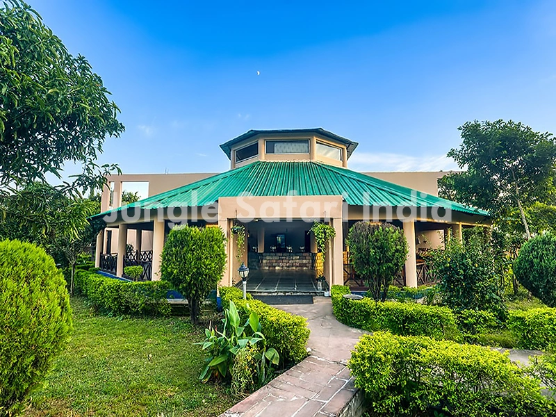 Tusk & Roar Resort is built in Village Dhela and is only 1 km from the Safari gate of Jim Corbett National Park. You can see some great views from this resort. The rooms of this resort have various amenities like AC, a Restaurant, Parking, a Business Center, and WiFi. The resort has different kinds of accommodation options: 8 concrete villas, 8 mud houses, and 1 family suite. The windows of the rooms are large so that you can enjoy views of the hill, pool, or garden.